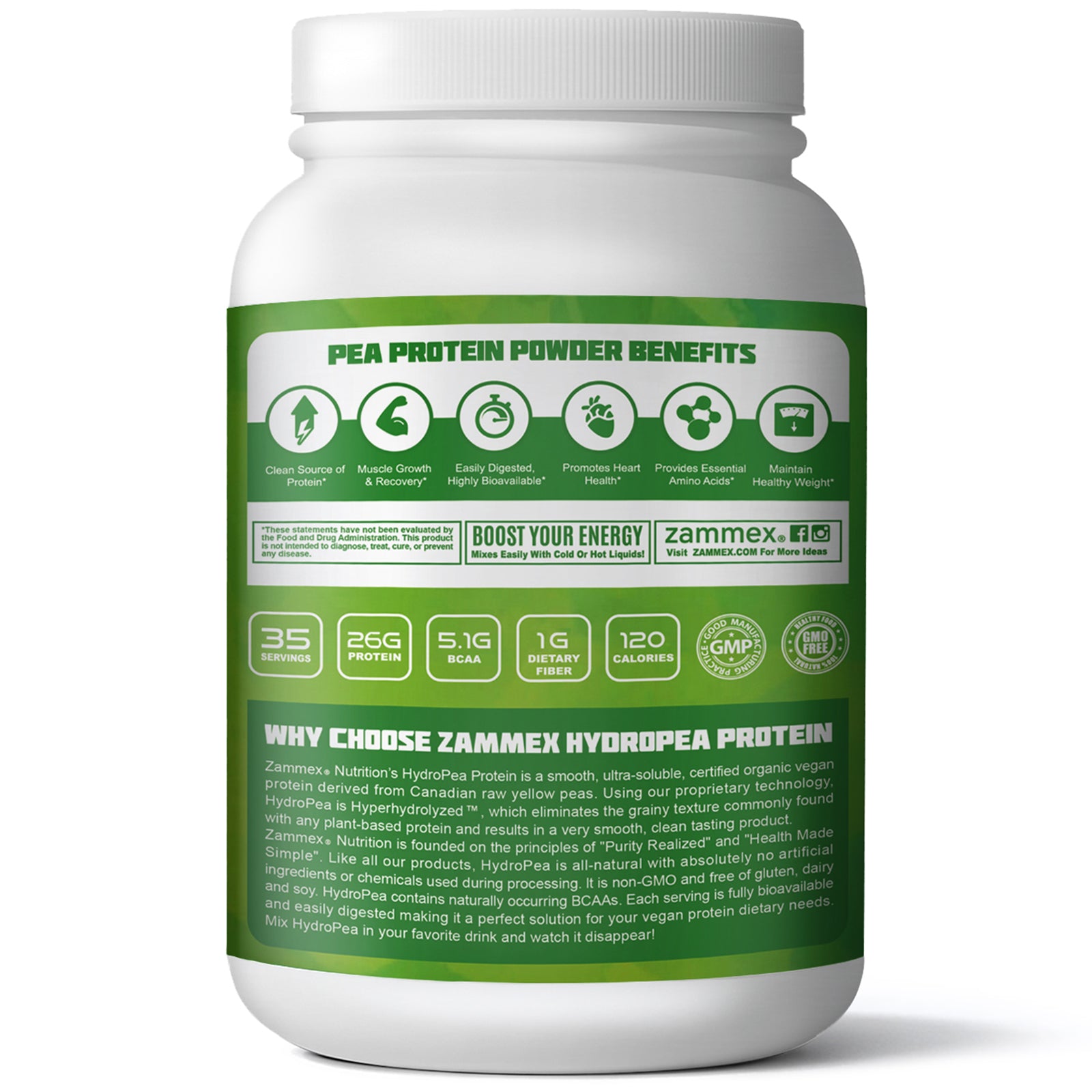ZAMMEX HydroPea Pea Protein can be easily absorbed into hot or cold liquids. Just add one scoop to your water, coffee or smoothie. Create it your own way!