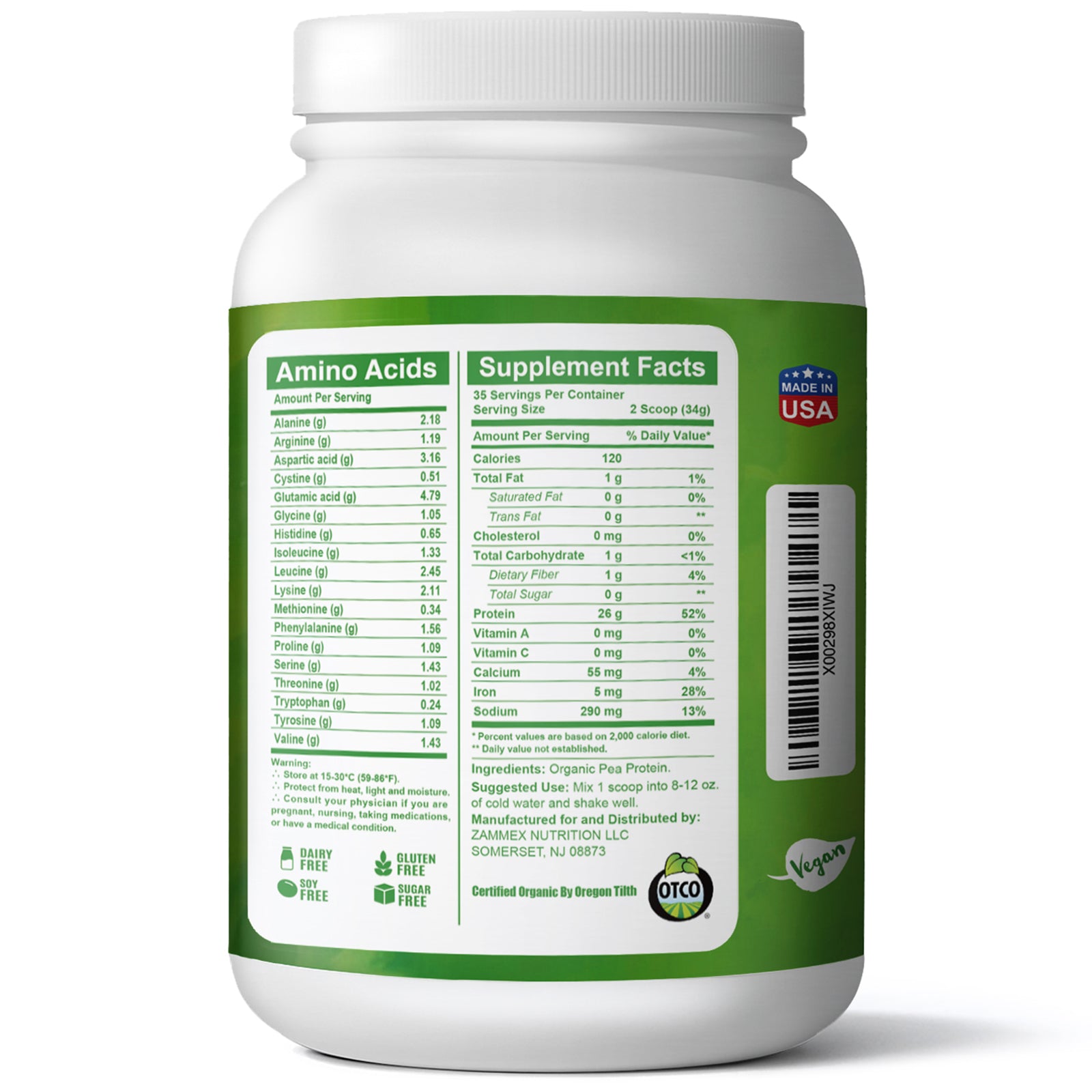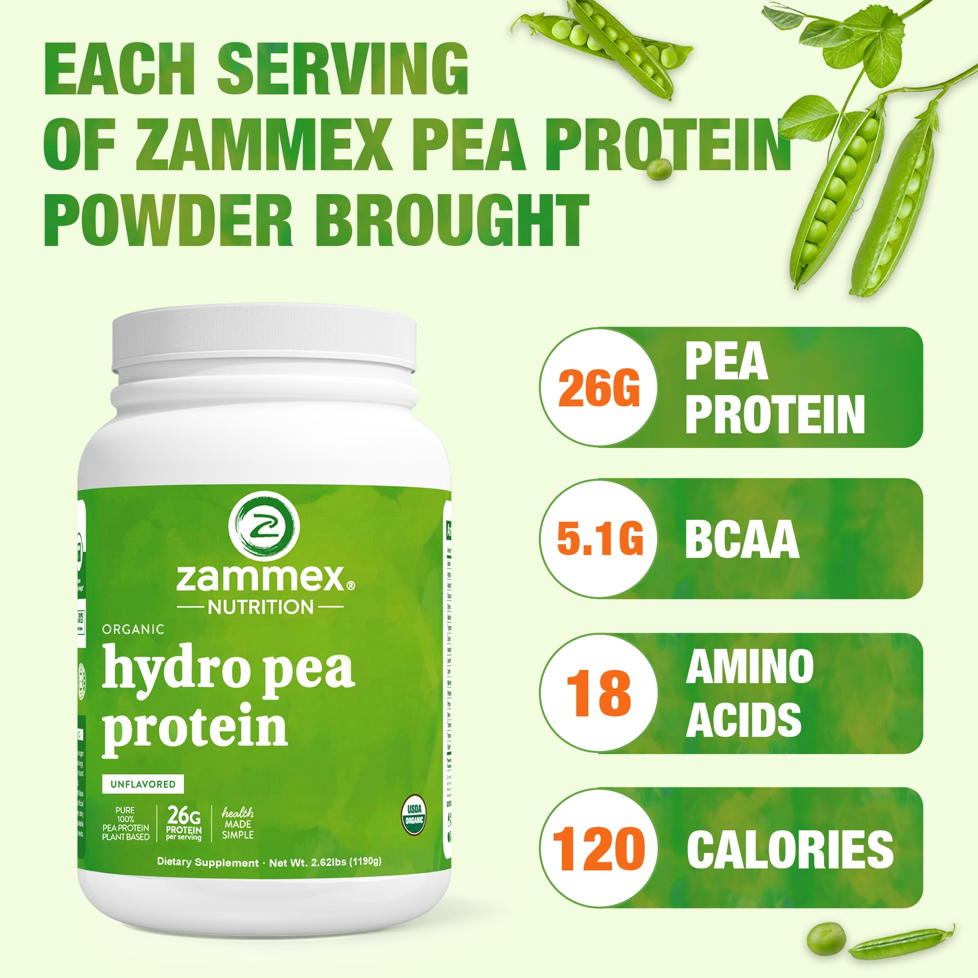 Zammex Organic Hydrolyzed Pea Protein 2.62lb