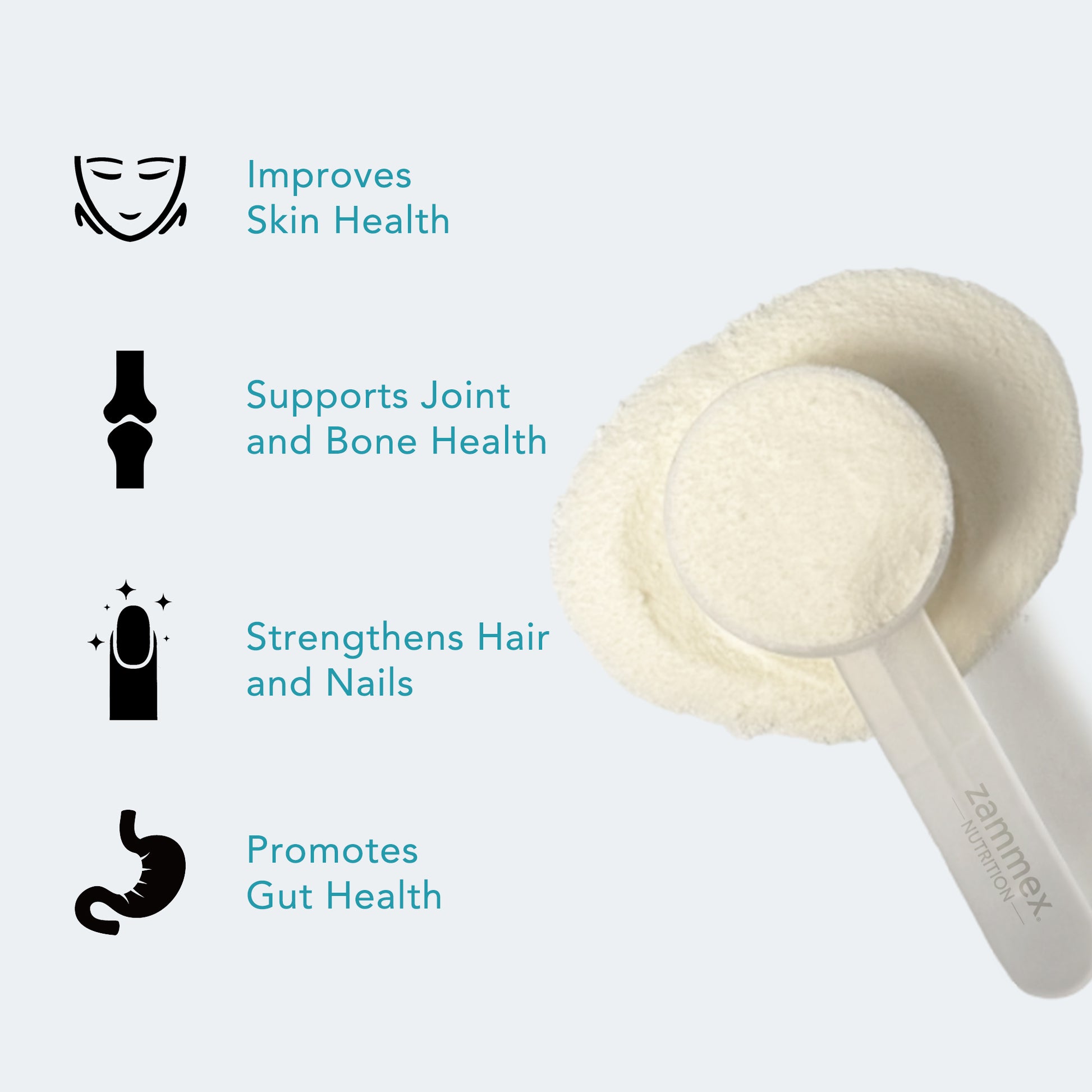 ZAMMEX marine collagen peptides are flavor and odor free and can be quickly dissolved into hot or cold liquids. Just add one scoop to your water, coffee, tea, juice, yogurt, or smoothie, etc.... Create it your own way easily!